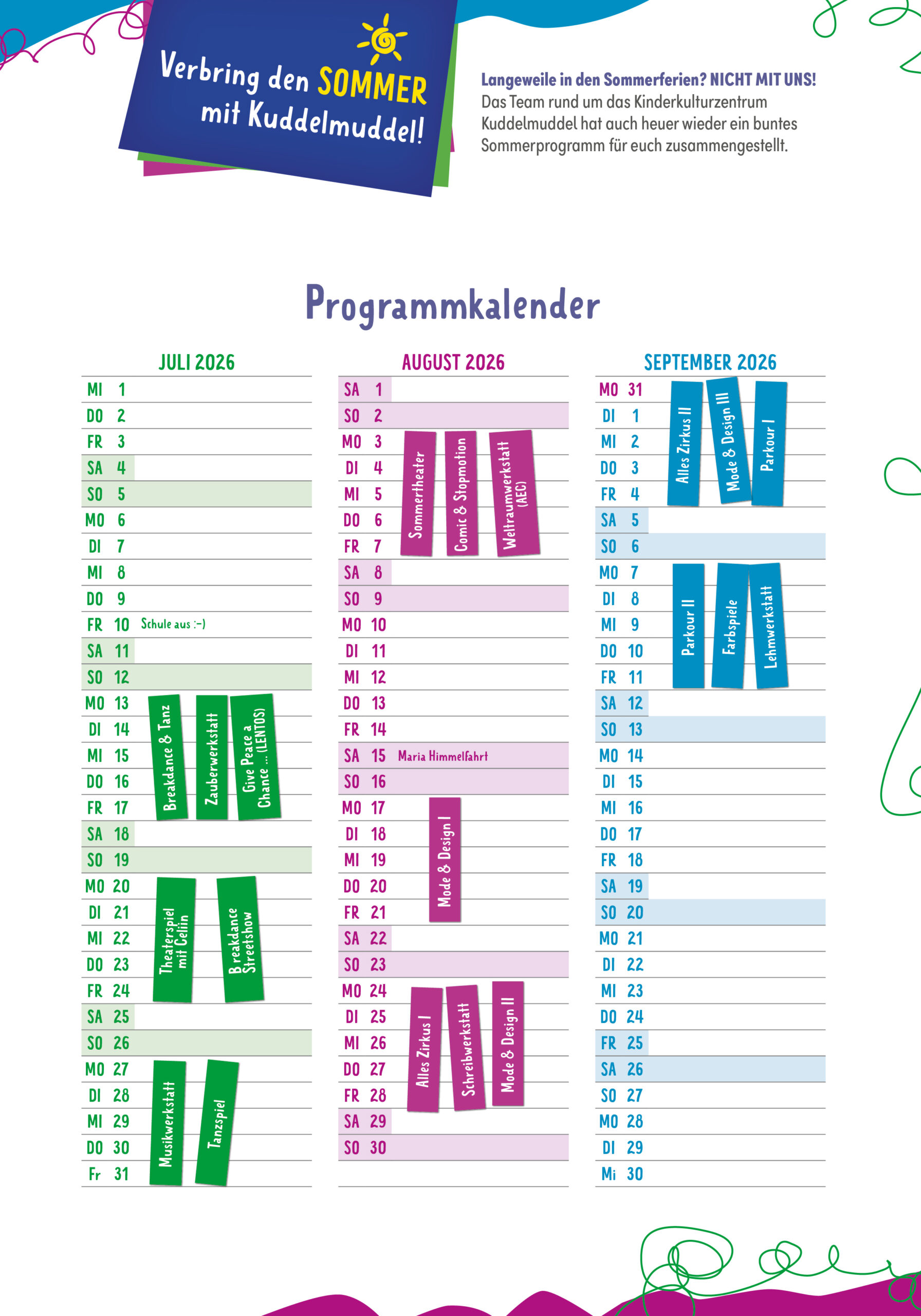 Zeit für Sommerwerkstätten 2026!