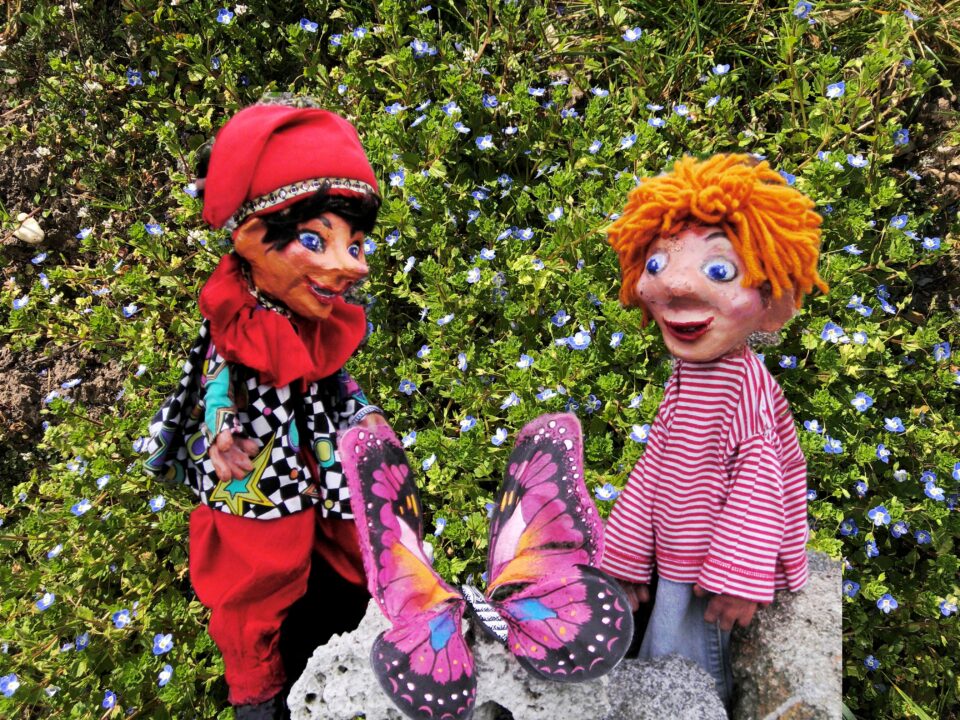 Doch noch bevor sich der Schmetterling mit der dicken Raupe unterhalten kann, ist diese plötzlich verschwunden.