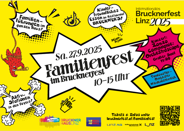 Neben der Kinderklangwolke gibt es im Brucknerfest 25 ein weiteres Angebot ausschließlich für Familien. In Kooperation mit dem Kinderkulturzentrum Kuddelmuddel sind Familien eingeladen, einen ganzen Tag im Brucknerhaus Linz zu verbringen.