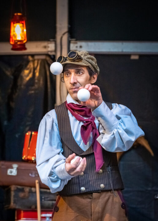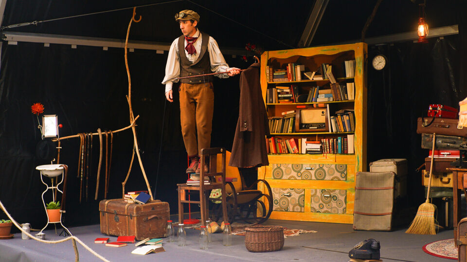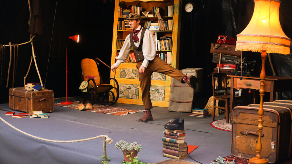 Mit Jonglage, Zauberei, Balanceakten und viel Humor entfaltet sich eine fantasievolle Reise voller Überraschungen. Alles beginnt, als der Geschichten-Fänger von einer seiner langen Reisen heimkehrt – mit Koffern voller Bücher und Erinnerungen. Schritt für Schritt entwickelt sich ein spannendes Zusammenspiel aus Zirkuskunst, Magie, Abenteuer und Erzählung, das Kinder und Erwachsene gleichermaßen begeistert.