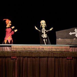 zeigt ein rasantes Puppenspektakel im Stil des traditionellen tschechischen Puppentheaters.